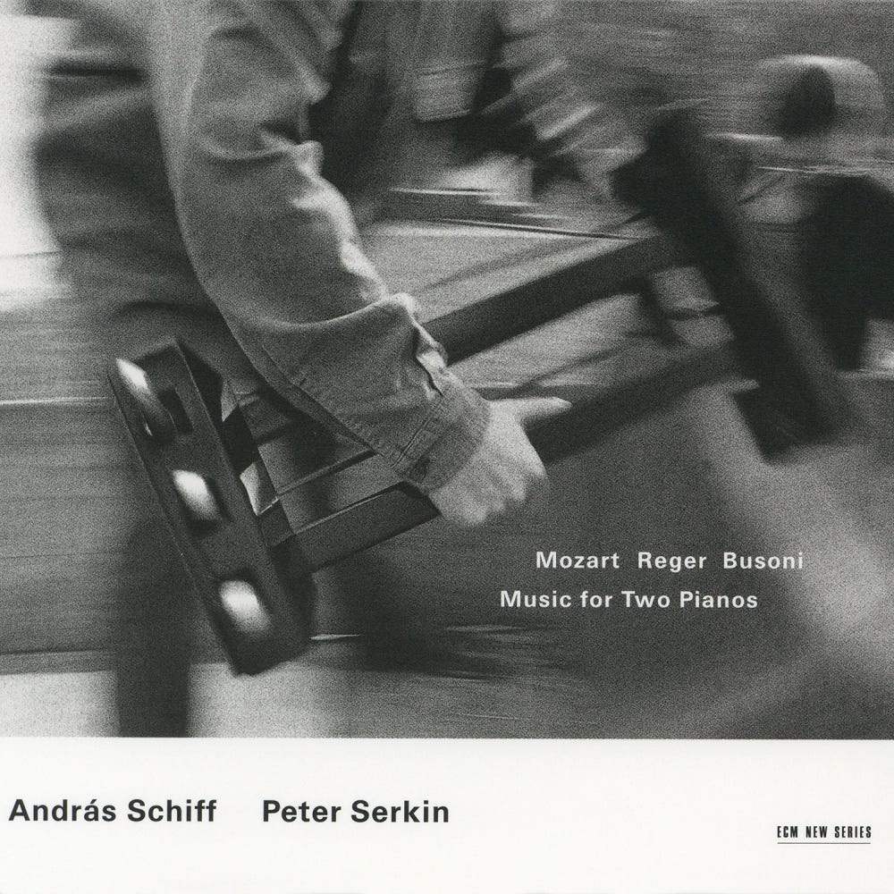 →Andras Schiff, Peter Serkin, Mozart/Reger/Busoni: Music for Two Pianos Mozart Sonata for 2 pianos in D, Allegro con Spirito.