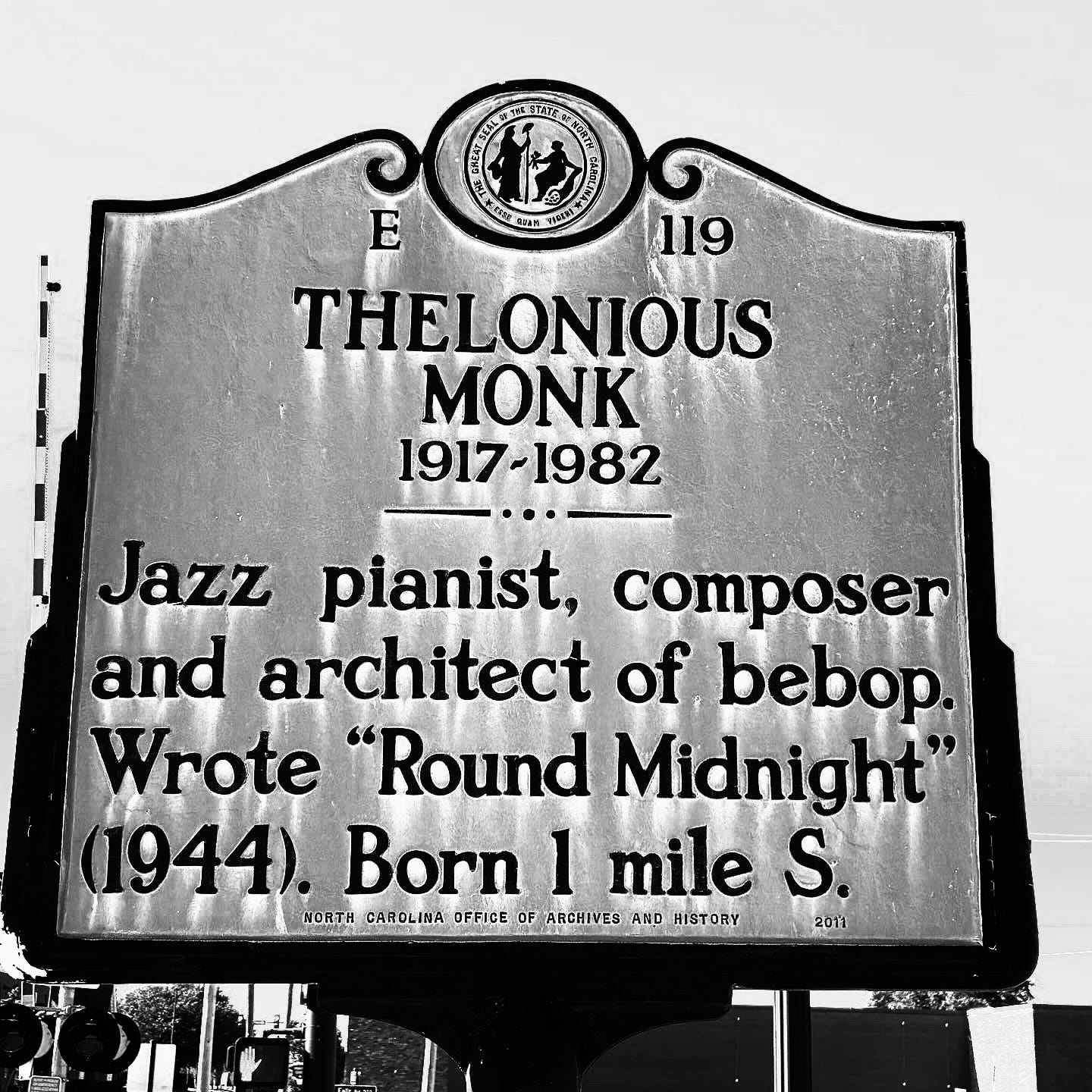 I strangely enjoyed the Hammett search, so a week later I dropped by the Monk plaque in Rocky Mount, NC. FWIW, the town seemed to be doing a bit better today than a few years ago when I was there for the Thelonious Monk Centennial. Naturally, I listened to the solo albums while driving enroute, and when Sphere started “Everything Happens to Me,” I burst into tears.